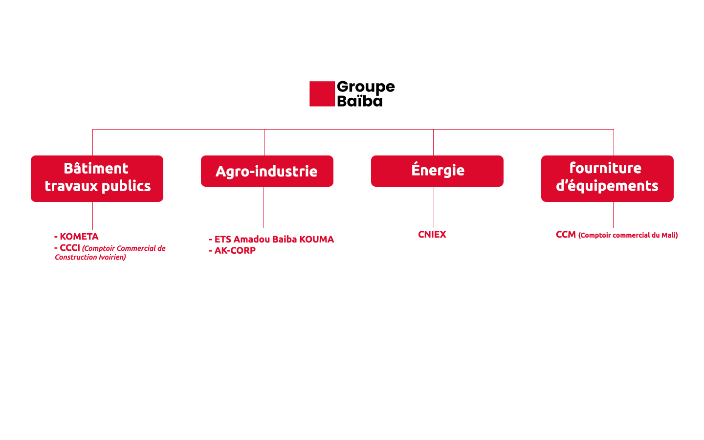 Créé par KOUMA Baïba Amadou, le groupe Baïba est un consortium de six (6) entreprises implantées au Mali, en Côte d’Ivoire et au Canada Amadou KOUMAPrésident du GROUPE BAIBA ABDOUL AZIZ KOUMADirecteur Général du GROUPE BAIBA © 2023, GROUPE BAIBA. Tous droits réservés Facebook Twitter Google-plus Linkedin